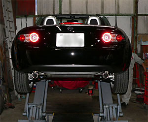 まずリフトアップ(笑) 試乗の前にリフトアップします。 とりあえずホィールベースは長いけどジャッキアップポイントの間隔はほぼ一緒でしたのですんなりリフトに上げることが出来ました。 |