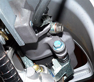 リアブレーキキャリパー こちらも変わっています。 少なくとも六角レンチでの調整ではなさそうです(笑) 今度は固着とか無いようににしてもらいたいものです。 |